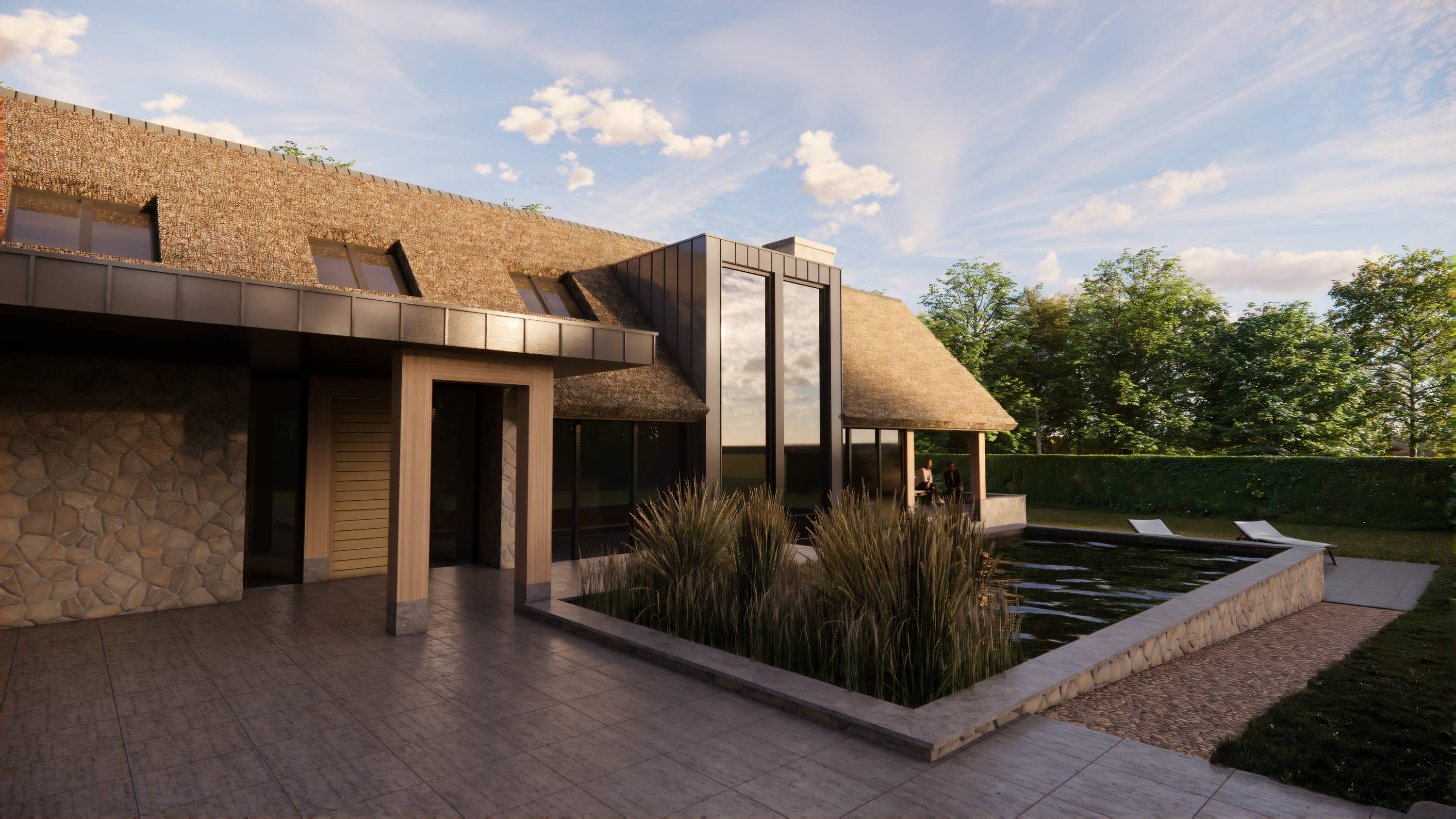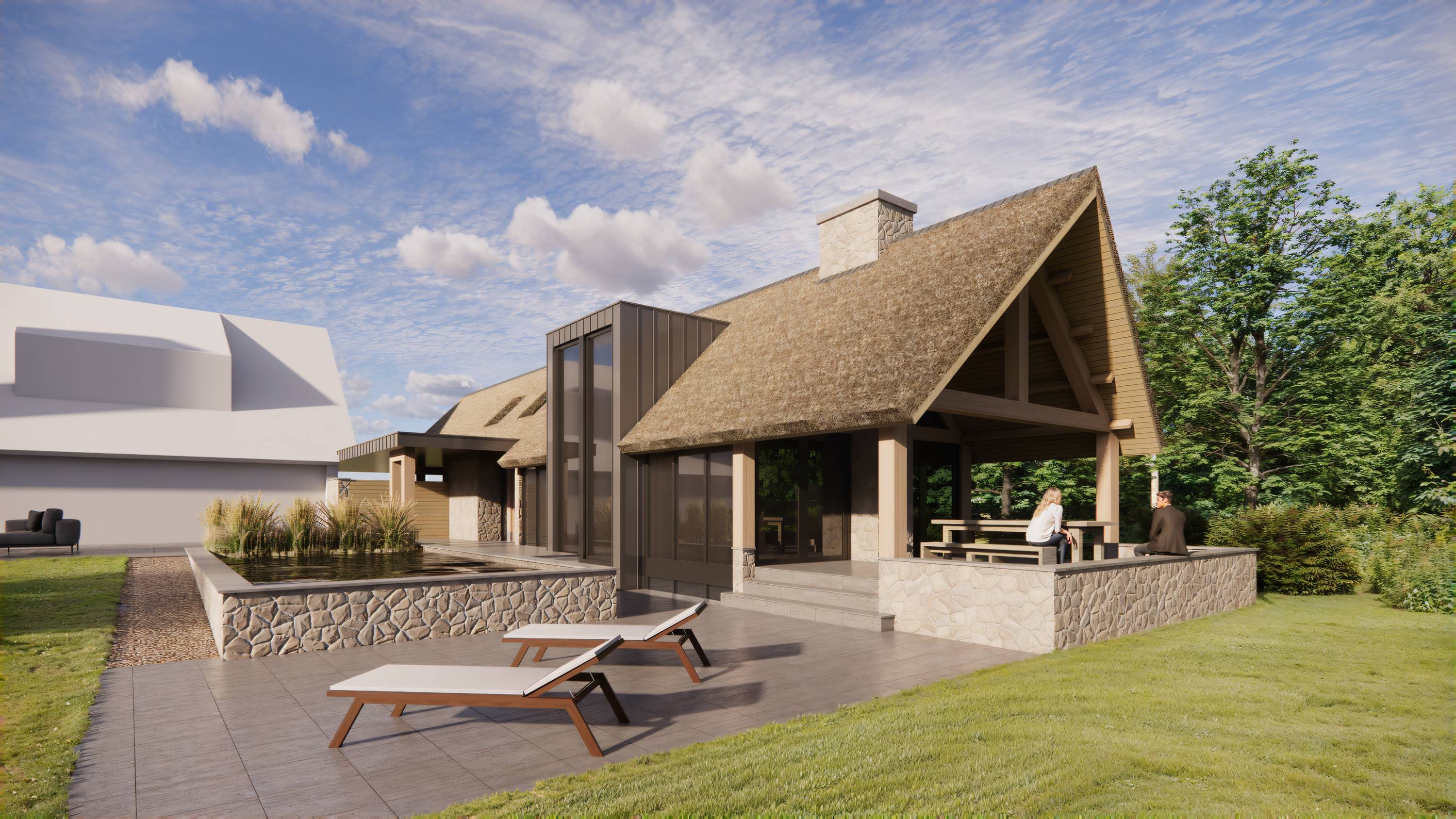 Voor een woning in Leende, regio Eindhoven, ontwierp Architectenbureau 37B een bijgebouw dat de charme van natuurlijke materialen combineert met de verfijning van moderne luxe en traditionele bouwtechnieken.