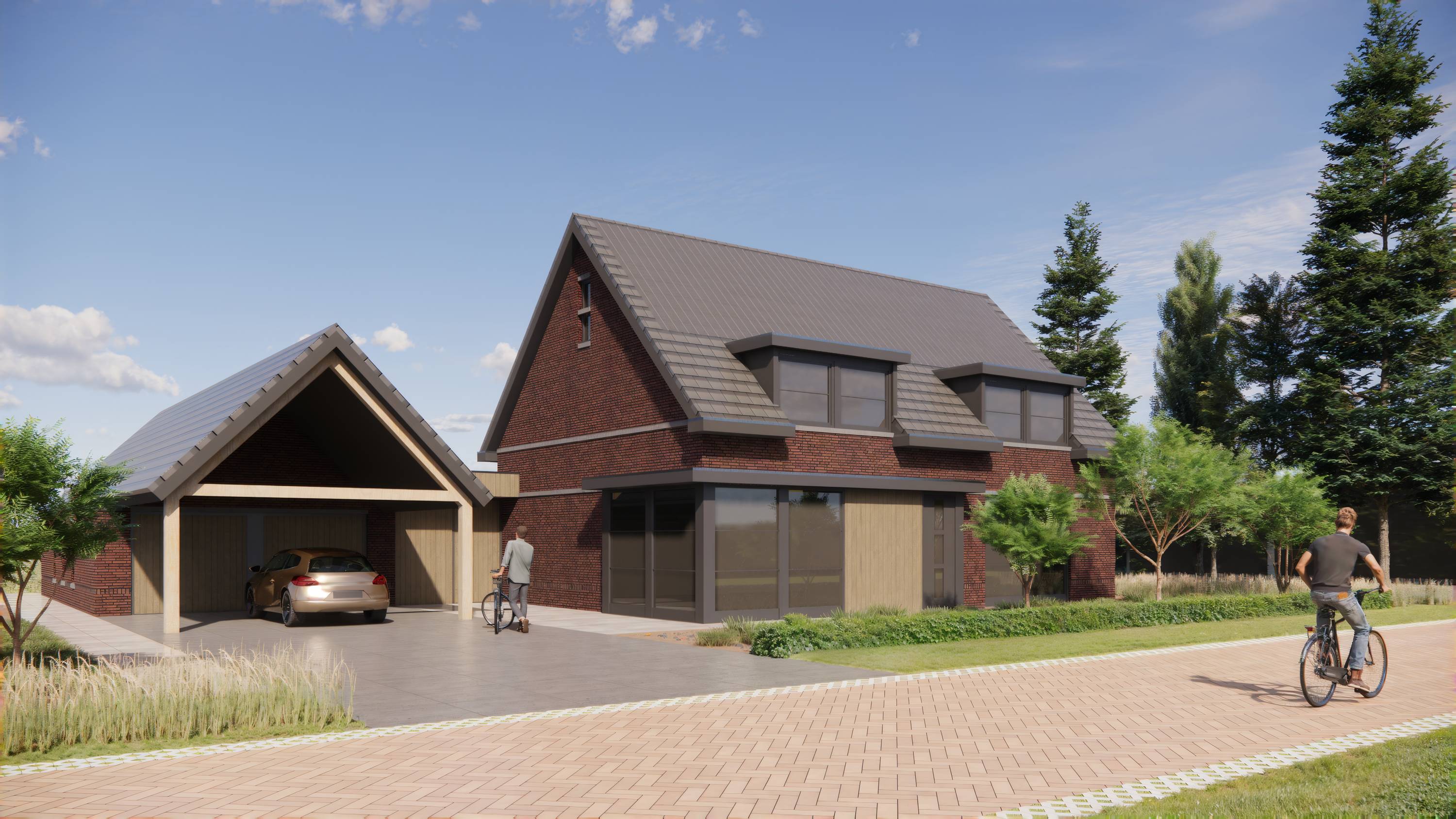 Bij de kavelindeling is zorgvuldig rekening gehouden met het ruimtelijke karakter van de omgeving. Zo voegt de woning zich op een natuurlijke manier in het landschap, met een esthetiek die traditie en eigentijdse architectuur harmonieus samenbrengt.